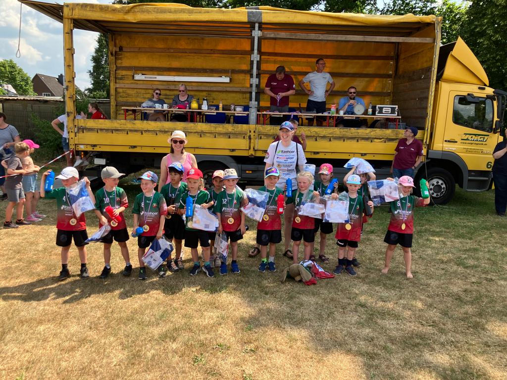 Heute ging es bei größter Hitze auch für die kleinsten Handballer zum Turnier nach Tungendorf. Zum Glück wurde nur zwischen zwölf und 14:00 Uhr Handball gespielt, danach haute die Mittagshitze die Minis,als auch die Eltern, um. Alle Kinder bestritten am heutigen Tag ihr erstes Handball Turnier und waren dementsprechend aufgeregt. Alle haben die Aufgabe toll gemeistert. Jeder hatte ganz viele Spielanteile, da wir zwei Mannschaften gemeldet hatten. Einige freuten sich über Spielzeit mit ihren engsten Freunden, zusätzlich lernten sie aber bereits, dass alle zur Mannschaft gehören und jeder den Ball bekommen sollte und wenn möglich aufs Tor werfen dürfte. Ganz viele Kinder konnten sich über das erste geworfene Tor freuen. Es wurde viel gejubelt! Auch die Eltern standen wohl genauso aufgeregt neben dem Spielfeld, wie ihre Kinder auf dem Feld. Wir freuen uns auf das nächste Turnier, dann dürfen gern ein paar Wolken aufziehen und Schatten spenden 😅. Danke Tina für deine Trainerunterstützung an diesem Tag! Wer Lust auf Handball hat komme gern zum F-Jugend Training am Dienstag oder Freitag! Wir freuen uns auf euch! Grüße vom Trainer/innen-Team