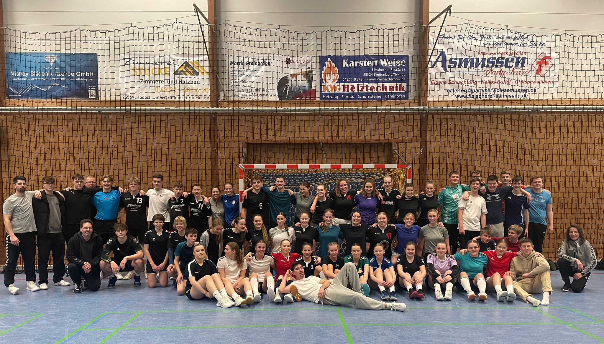 Wir begrüßten gestern das neue Jahr und die kommende Rückrunde mit einem spontanen Juxtunier m/w c-a Jugend!Mit 53 Jugendlichen trafen wir uns gestern um 19.30 Uhr in Münsterdorf mit guter Musik und einem hervorragendem Buffet.Ein Dank an euch für die tollen Leckereien! Während sich unsere jungen Handballer ordentlich erwärmten, kümmerte sich Sven S. mit Unterstützung von Torsten um den Spielplan.Auch hier ein dickes Danke für diesen denkerischen Orgajob. Auch die Auslosung war erst etwas komplizierter, da wir ein leichten Torwartmangel zu verzeichnen hatten bei 6 Teams.Aber was wären wir ohne ein paar verrückte Trainer ,Betreuer und Väter….So erklärten sich Thorsten K,Bjarne,Kyle und Keith bereit den Kopf hinzuhalten.Hut ab für die heißen Paraden, vielen Dank!!! Kampfgericht übernahmen unsere Verletzten Hannah-Louisa und Finja der wJB und den undankbaren bzw unbezahlbaren Schirijob übernahm Luk P. Vielen lieben Dank für euren mega starken Einsatz!! Nachdem nun auch die Teams gebildet waren ,waren die Jugendlichen auf sich selbst gestellt.Aufstellungsbesprechung ,organisieren wann wer wechselt und was halt alles zum Teambilding gehört.Und das klappte schneller und reibungsloser als erwartet. Gespielt wurde in zwei Gruppen mit 15 min. Spielzeit. Es wurden uns richtig tolle ,überraschende und vorallem auch spannende Partien gezeigt.Einige Eltern ließen es sich nicht nehmen mal reinzuschauen und waren ebenso begeistert. Am Ende wurden die Plätze ausgespielt und es gab für jedes Team eine kleine Aufmerksamkeit.Natürlich darf da nicht die „Capri Sonne “ fehlen. Ca. 23:15 Uhr war das gelungende Spektakel beendet und hier geht ein großes Lob an unsere Jugendlichen raus….Durch eure Fairness, euren mega Einsatz und euren unermüdlichen Handballhunger habt ihr dieses Event zum vollen Erfolg gemacht.Danke!!! Wir wünschen euch einen erfolgreichen Start in die Rückrunde, keine Verletzungen und weiterhin viel Spaß!