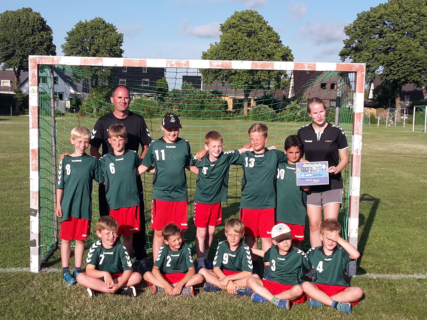 Am 17.06. reisten wir mit 11 Jungs zum Feldturnier des SV Tungendorf. Bei bestem Wetter und guter Laune wurde es aber auch schnell ernst. Da die Jungs noch kein Spiel zusammen gespielt hatten war doch eine kleine Anspannung in der Mannschaft spürbar. Die ersten beiden Spiele gegen die HSG 91 Nortorf und den SVT Neumünster wurden dann aber relativ locker gewonnen und es stellte sich eine Sicherheit im Spiel ein. Nach einer etwas längeren Pause stellte sich dann aber der erste große Brocken uns in den Weg: der Suchsdorfer SV. Dieses Spiel wurde nach einem unglaublichen Kampf unverdient mit einem Tor verloren, so dass wir im letzten Spiel doch unter Druck gerieten um das Halbfinale zu erreichen. Unser Gegner war die Mannschaft aus Dänemark, die Hojby S&G. Nachdem gefühlt die halbe Mannschaft mit D-Jugendlichen auflief und uns vor eine noch nie gespielt Abwehrvariante stellte konnten unsere Jungs mit einer starken Mannschaftsleistung die Dänen mit einem Tor niederringen und somit war das Halbfinale gebucht. Von dem Tumult am Spielfeldrand und den Beleidigungen der dänischen Anhänger während des Spiel schreibe ich mal lieber nicht. Im Halbfinale wartete die Mannschaft des SV Matzlow-Garwitz auf uns. Diesem Team konnten wir aber leider kein Parolie bieten und somit mussten wir uns mit dem Spiel um Platz drei begnügen. Der Gegner hier war die HSG Hohe Geest. Es wurden noch einmal alle Kräfte mobilisiert und wir konnten in einem engen Spiel als Sieger und somit als Dritter des Turniers mit erhobenen Kopf vom Platz gehen. Die Freude war groß über das Ergebnis, zumal, wie oben geschrieben, die Mannschaft zum ersten Mal zusammen gespielt hat. Danke Jungs für ein tolles Turnier und auch ein Danke an alle Eltern, Fans und Unterstützer, die uns lautstark nach vorne gepeitscht haben. Und von mir ein persönliches Danke an Svea, die noch einmal aus dem Trainerruhestand zurückgekehrt war um mich/uns tatkräftig zu unterstützen.