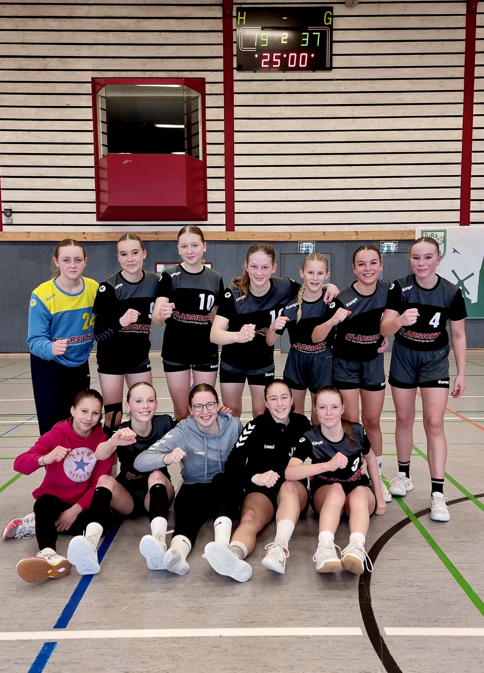 Die zweite Hälfte gestaltete sich ähnlich, doch mussten wir eine 2 min. Strafe von Henrike auffangen und zusätzlich eine nicht ganz verständliche rote Karte für Caitlin. Aber unsere Mädels ließen sich dadurch nicht aus dem Konzept bringen.Besonders Mariella (10) drehte noch mal richtig auf ,sagte toll die Spielauflösungen an und wusste sich hervorragend im 1 gegen 1 durchzusetzen.Malia reihte sich zusätzlich in der Torschützenliste ein.Das Zusammenspiel der wjc und wjd war schon bewundernswert!Das bestätigte auch das Endergebnis von 19:37. Diese Saison ist die wjc wirklich mit gesundheitlichen Einschränkungen geplagt und was sollen wir sagen,ohne die mega Unterstützung der wjd hätten wir so manches Mal alt ausgesehen. Von daher können wir nicht genug Danke sagen!