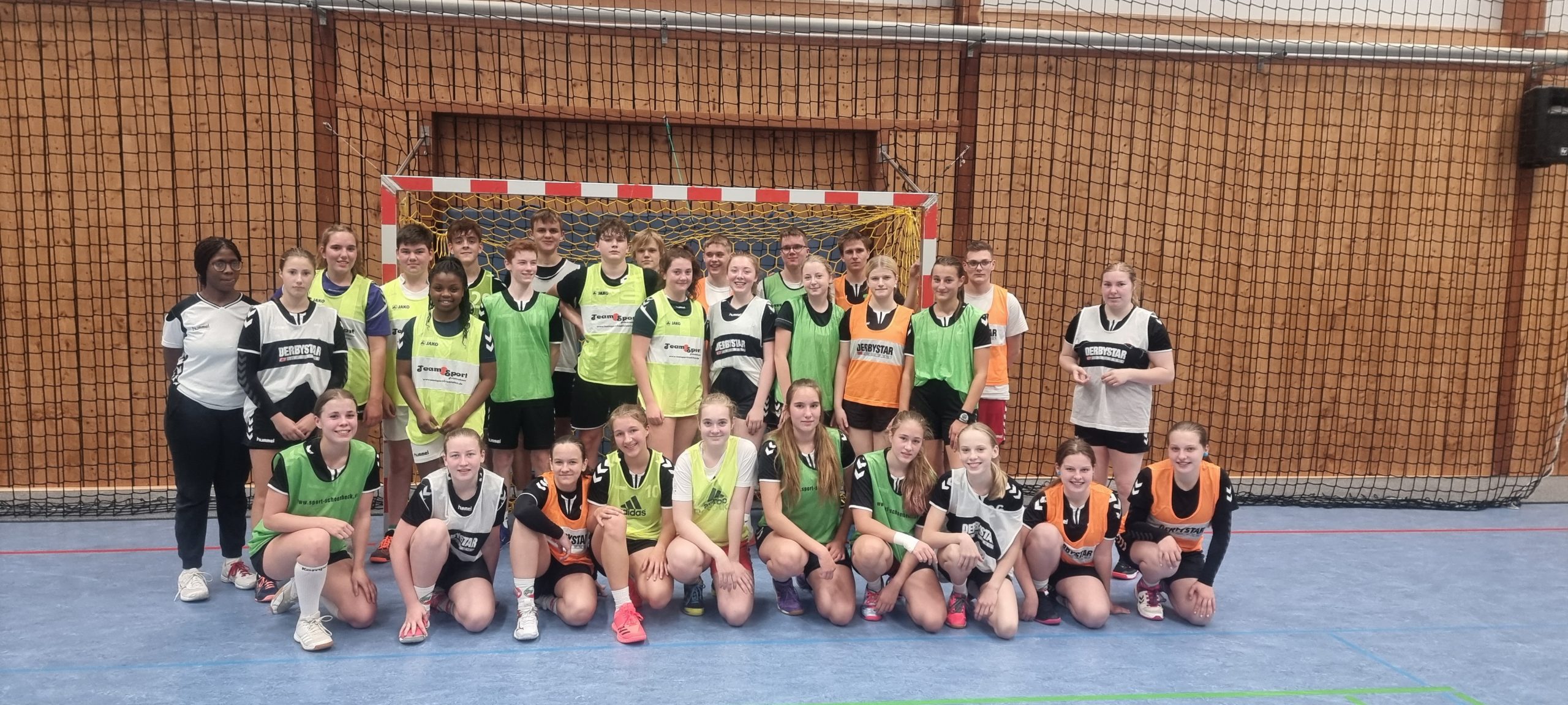 Am Samstag den 9.10 hatten unsere c-a Jugendlichen die Gelegenheit sich in gemischten Mannschaften mal so richtig dem Spaßhandball zu widmen.Aus verletzungsbedingten Gründen und Urlaubsreisen hatten wir anfangs ein kleines Torwartproblem,doch durch den tollen Einsatz von Kyle,Astrid und Julius konnten wir das schnell lösen.Vielen Dank das ihr den Spaß mitgemacht habt!Lasse aus der a übernahm verantwortungsvoll das Kampfgericht 😉 . Nach dem gelost wurde wer mit wem spielt,durften sich die Jugendlichen einen Teamnamen auswählen, sich aufwärmen und ihre Aufstellung besprechen.Das ging überraschend schnell und harmonisch ab.So gingen vier Teams an den Start.Die Oreos,Spartakus,Ajax Dauerstramm und die Handballmeister 😁.