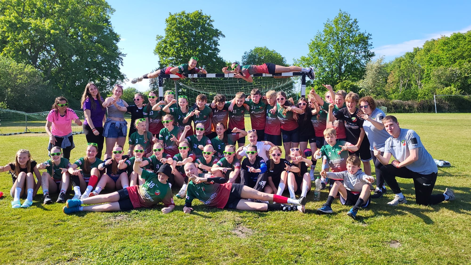 Am Samstag Morgen wurde um 7 Uhr geweckt und die Kinder waren flott im Trikot am Frühstückstisch.Zum Glück hat der Wind nachgelassen und die Temperaturen wurden angenehm.Perfekt für die ersten Spiele.Die mJD gewann ihre ersten Partien recht eindeutig.Nur das letzte Spiel gegen Bielefeld verloren sie knapp mit einem Tor und gingen als Tabellenführer in die nächste Runde.Unsere wJD hatte gleich Pech und starke Gegner,aber schlugen sich wacker mit zum Teil engen Ergebnissen.Landete so aber in der Platzierungsrunde. Unsere wJC konnte sich mit drei klaren Siegen in ihrer Gruppe auf den ersten Platz katapultieren. Ein guter Start in das Turnier. Im Anschluss fanden die Betreuerspiele statt,wo sich unsere den zweiten Platz erspielten.Glückwunsch ,war wirklich sehenswert ,vorallem Herr Kieckhöber im Tor mit grandiosen Paraden.Danke für den Einsatz. Am frühen Abend ging es dann singend mit allen zusammen die Promenade lang zum Döner futtern.Immer wieder ein besonderes Highlight ,wo das Eis im Anschluss nicht fehlen darf.Den restlichen Abend bis 22 Uhr hatten die Kinder zur freien Verfügung. Ob Disco oder wilde Wahrheit oder Pflicht Spiele im Zelt.Schon spannend was dort so ans Licht kommt 😉 . Am nächsten Morgen klingelte der Wecker bereits um 6 Uhr.Ganz so fit und schnell wie am Morgen davor war es allerdings nicht mehr…. Zudem hat es auch noch geregnet.Nun gut die Haare wurden in Turbogang gerichtet ,gefrühstückt,Zähne hinterm Zelt geschubbt und ab aufs Feld.Unsere Betreuer-Mädels machten sich mit Dacia auf den Weg nach Felde zum Regionalbestenturnier.Viel Glück!Die wJC hatte gleich als erstes die Mädels des MTV Lübeck auf dem Zettel.“ Hui die sind aber groß. „Hoffentlich sind unsere Damen ausgeschlafen…und tatsächlich, trotz des nassen Balls und rutschigem Boden ,waren sie auf den Punkt da.Sie zeigten uns Szenen…wow 2:15.Auch das zweite Zwischenrundenspiel entschieden sie eindeutig mit 13:7 für sich .Halbfinale!!!Im Halbfinale trafen unsere Mädels erneut auf Travemünde. Das Spiel gestalteten unsere Damen allerdings spannender als am Vortag.Joyce rote Karte …wilde Pässe,schläfrige Abwehr…dennoch reichte es noch für einen 12:10 Sieg!Finale….Finale!!!! Unsere Jungs punkteten ebenso mit 5:11 gegen den MTV Lübeck… Halbfinale…musste dann allerdings gegen die Bad Boys Overberge eine bittere Niederlage schlucken. Körperlich einfach zu stark überlegen.So ging es für unsere Jungs um Platz 3 und 4.Kronshagen 2 hieß der Gegner…und es wurde ein richtiger Krimi.Absolut auf Augenhöhe ging es mit 10:10 in die Verlängerung. Auch dort schaffte es keine Seite das Spiel zu entscheiden und es kam zum 7.Meter werfen….Durch die überragende Torwartleistung von Till (12 gehaltene 7.Meter an diesem Tag) schafften unsere Jungs es aufs Treppchen!Platz 3.Herzlichen Glückwunsch. Unsere wJD konnte endlich ein Spiel für sich entscheiden und erreichten somit den 11.Platz.Zusätzlich gewannen sie noch unsere interne höchste Menschenpyramide Challange und waren erster im Zeltaufräumen. Unsere wJC traf im Finale auf TUS Brake ,die wir in der Zwischenrunde bereits trafen.Trotzdem hieß es jetzt nur nicht nervös zu werden. Vorbereitungsrituale und evt. Möglichkeiten besprechen, was wäre wenn und der Anpfiff fiel.Es wurde mega laut angefeuert,die Stimmung war richtig gut.Danke euch allen dafür!!!Die Mädels spielten ihr temporeiches Spiel und waren in der Abwehr hochmotiviert. Es war ein schönes Spiel .Malia weinte bereits vor Freude in der Halbzeit…Hallo es ist noch nicht zu Ende! Aber unsere Mädels waren gut drauf und entschieden das Spiel mit 15:7 für sich.Wahnsinn Platz 1.🥇 Alle liefen schreiend auf das Feld ,es wurde gefeiert,geweint und getanzt.Zusätzlich gewann unsere wJB in Felde noch das Regionsbestentunier!!!Was für ein Erfolg. Natürlich ging es dann mit Trikot in die Ostsee…Der Abend wurde mit Pizza für alle abgerundet .Party ,Disco bis 23 Uhr!Am Montag ging es müde und glücklich nach Hause.Es war ein grandioser Saisonabschluss und freuen uns jetzt schon auf nächstes Jahr!!! Danke an das Betreuerteam,die den Kindern wieder ein unvergessliches Handball Highlight bereitet hat.