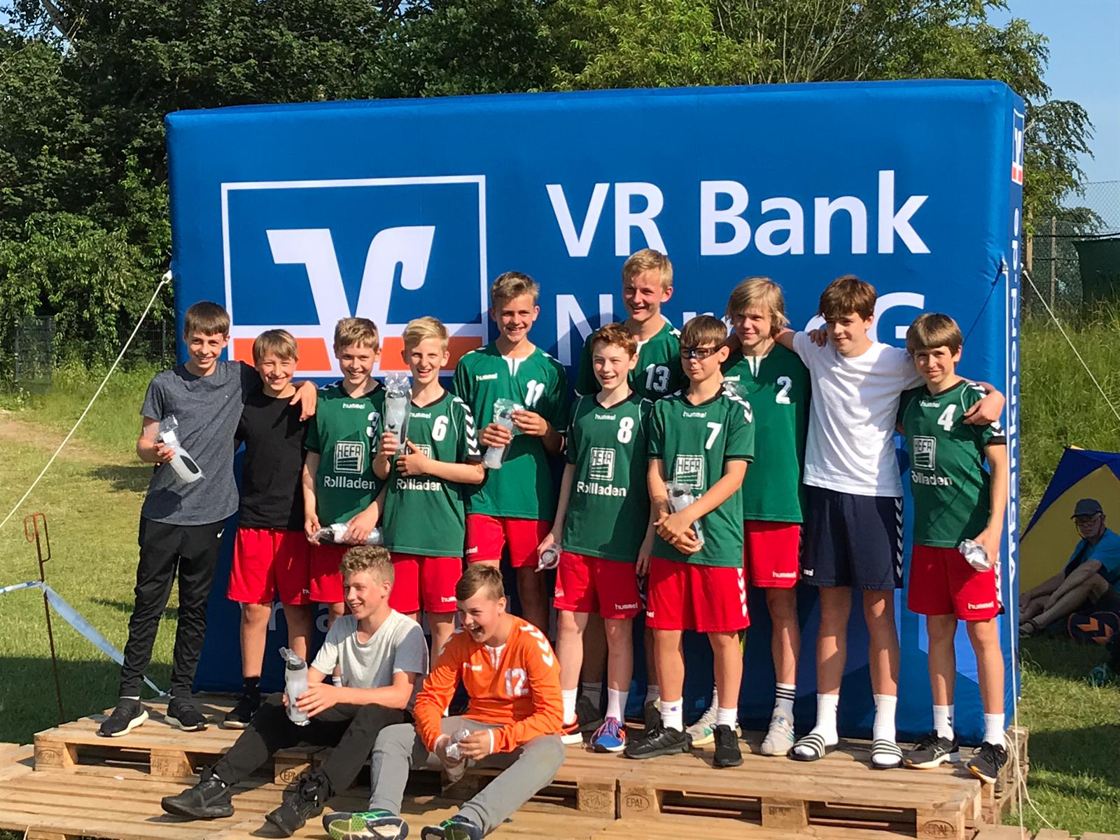 Am heutigen Sonntag bestritten wir nach erfolgreicher Qualifikation zur SH-Liga unser Rasenturnier in Jübek. Der erste Gruppengegner erwies sich gleich als der schwerste. Gegen die 2. Mannschaft der HSG SZOWW gerieten wir nach kurzer Zeit in Rückstand. Wir zeigten aber Moral und kämpften uns wieder zurück. Besonders Tjard hielt uns mit seinen tollen Paraden um Spiel. Kurz vor Schluss konnten wir das Spiel drehen und gewannen am Ende mit 2 Toren.