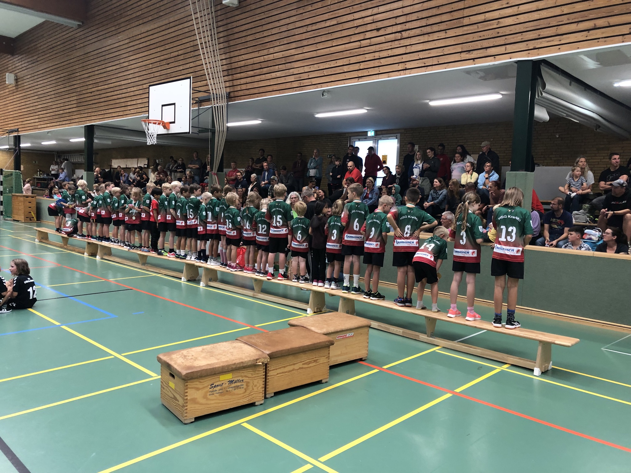 Heute stand das erste Turnier der Saison 2023/2024 an. Vier Mannschaften der HSG Kremperheide / Münsterdorf gingen an den Start. Viele der Kinder bestritten ihre ersten Handballspiele vor ganz vielen Zuschauern. Eine Jungstruppe aus dem Jahrgang 2015 zeigte ihr Können in einer stärkeren Spielklasse und zeigte eindrucksvoll, wie schnell, variabel und spielstark schon die großen kleinsten Handballer spielen können. Zum Glück konnten wir auch eine Mädchenmannschaft stellen. Ich denke, die Mädchen waren sehr erfreut, dass sie das erste Mal als Team auftreten konnten. Wir freuen uns weiterhin über neue Gesichter, vor allem die Mädchenmannschaft freut sich über weitere Verstärkung! Am 12.11. findet unser nächstes Turnier in der Halle in Münsterdorf statt. Wir freuen uns über viele Zuschauer und interessierte Kinder, die vorbeischauen.