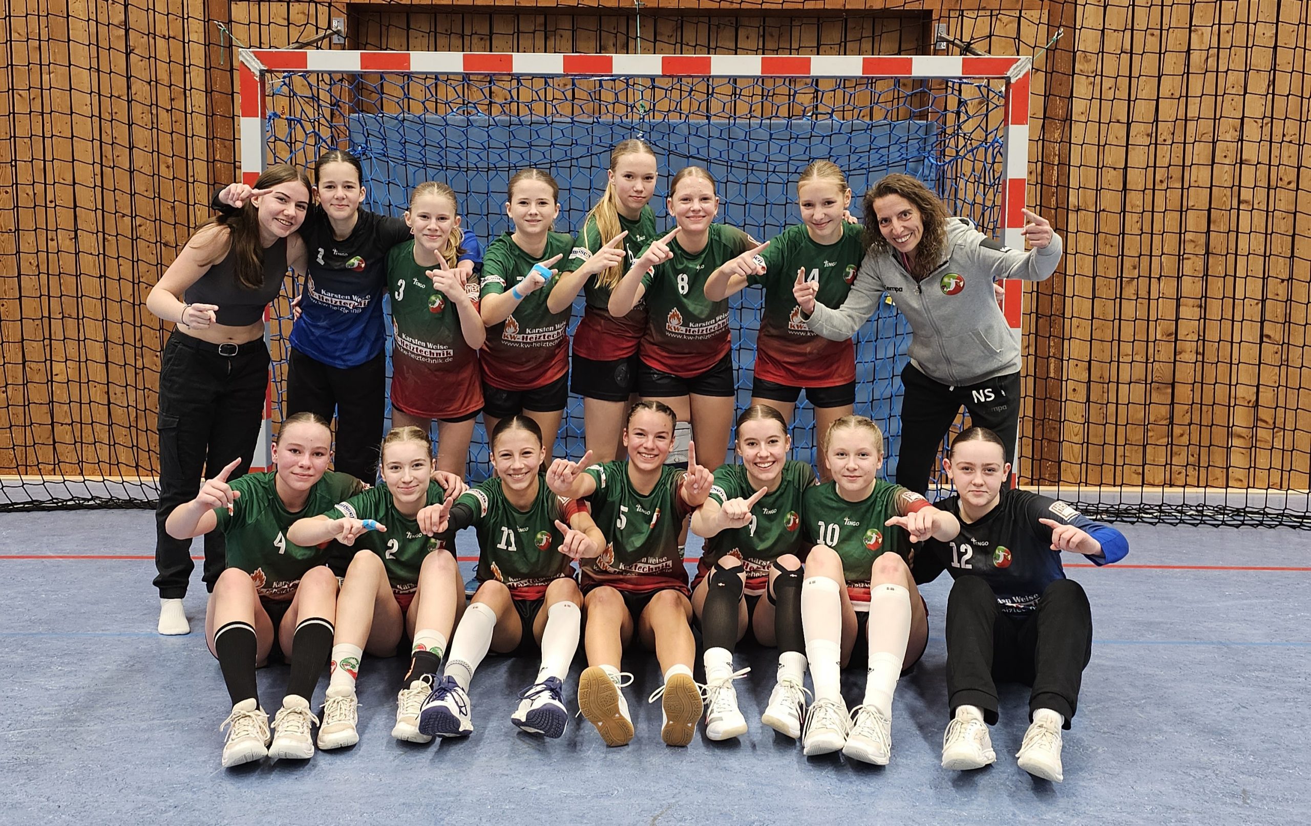 Unsere wJC traf gestern auf die Tabellenführer Eider Harde.Wie schon erwähnt konnten unsere Mädels bereits in der Hinrunde mit einer 4 Tore Führung den Tabellenführern die ersten und einzigen Punkte klauen.Das war schon ein Highlight!Doch war da die gegnerische Mannschaft nicht vollständig, es fehlte die stark spielende Linkshänderin.Gestern traten sie allerdings vollständig an und unsere Mädels wirkten eher noch müde und leicht angeschlagen vom Spiel letzter Woche. Doch man soll sich nicht täuschen lassen…Sie starteten hoch konzentriert in die Partie. Die Abwehr stand und Jonna glänzte erneut mit starken Paraden. Vorne wurde der Ball schnell gespielt und klare Chancen wurden genutzt.In der 7.min fiel bereits beim 6:2 die grüne Karte der Gegnerinnen.So durfte es gern weitergehen…Die Pause ließ unsere Mädels auch nicht davon abbringen genauso weiter zu machen.Zwischenzeitlich konnte sich allerdings die gut aufgelegte Linkshänderin öfter den Weg durch unsere Abwehr erarbeiten,sodass auch wir die grüne Karte legten…. Kurz durchatmen kleine Änderungen in der Aufstellung und weiter ging es.Unsere Mädels setzten es stark um und zeigten uns zusätzlich ihre tollen Spielauflösungen. Das Zusammenspiel stimmte und es reihten sich bereits 6 Spielerinnen in der Torschützenliste ein. Zur Halbzeit erspielten sie sich eine beruhigende 8 Tore Führung. (18:9) Nun so groß die Freude auch war,es ist noch nicht entschieden, also weiter konzentrieren und dran bleiben. Das taten sie auch ,sie arbeiteten hart in der Abwehr und auch Pia zeigte uns ihr Können. Sie parierte 7.Meter und zugleich den Nachwurf!Joyce und Mariella waren gut aufgelegt, aber „alle“ Mädchen gaben ihr bestes, kämpften in der Abwehr,hielten Bälle und spielten die richtigen Pässe im richtigen Moment. Die Freude war besonders groß als unsere langzeitverletzte Elin auch ihren 7.Meter Wurf verwandelte.Keiner hätte erwartet das unsere Mädchen dieses Spiel so überzeugend dominieren würden.Das eindeutige Ergebnis (33:21)zeigte allerdings zu was unsere Mädels im Stande sind!Die Stimmung in der Halle war großartig und da geht ein riesen Dankeschön an alle raus!Ohne wäre es ein halb so schönes Erlebnis!!!Mädels seid stolz auf euch,wir sind es schon lange! Nächste Woche geht es Auswärts gegen Angeln weiter und wir freuen uns, wenn ihr wieder dabei seid.