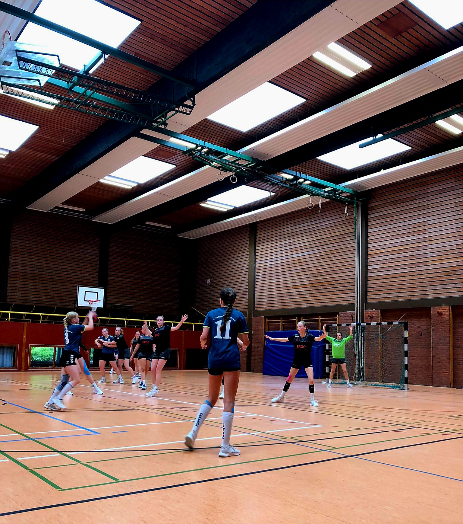 Unsere wJB1 hatte heute ihr Auftaktspiel in Tellingstedt. Leider mussten wir auf unseren Neuzugang aus HKN verzichten und eine kurzfristige Krankmeldung, ließ den Kader zusätzlich wehement schrumpfen.Die wJB2 spielte zeitnah in Marne und konnte so leider auch nicht unterstützen. Doch die wJC sprang spontan ein.Vielen Dank für euren starken Einsatz. Nun zum Spiel…. Zunächst startete das Spiel sehr ausgeglichen.Enid hatte immer eine passende Antwort auf ein gegnerisches Tor. Liv parierte mega im Tor und auch Hannah-Louisa netzte ein.Sie konnten sich erstmals leicht absetzen. Im Angriff fehlte es hier und da noch am Zusammenspiel oder der Trefferquote, doch durch ihre starke Abwehrleistung konnten sie mit einer guten drei Tore Führung in die Halbzeit gehen.(9:12) Die zweite Hälfte gestaltete sich eher spannend. Die Gegnerinnen stellten ihre Abwehr von offensive ins defensiv um ,wo unsere vorerst nicht so recht mit um konnten und viel Pech im Abschluss hatten. So kam es fix zum Ausgleich und die Partie blieb lange auf Augenhöhe. Aber Enid war heute besonders stark aufgelegt und ließ sich mit ihren 11 Treffern nicht die Wurst vom Brot klauen.Immer wieder nutze sie ihre Chancen aus dem Rückraum oder brachte Hannah-Louisa (7) gut ins Spiel .Caitlin und Henrike netzten zusätzlich wichtige Bälle ein .Doch letztendlich konnten die Mädels durch ihren starken Einsatz in der Abwehr (dickes Lob an der Stelle an Mia!)und einer hervorragenden Torfrau Liv, das Spiel mit 20:23 für sich entscheiden. Starke Leistung mit nur 7 Leuten, sich so einen Erfolg zu erkämpfen! Für die HSG KreMue spielten:Liv,Mia,Hannah-Louisa, Enid,Leni W,Caitlin, Henrike